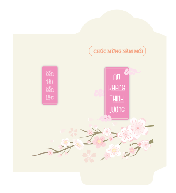 Mẫu bao lì xì chủ đề "Hoa đào ngày tết"