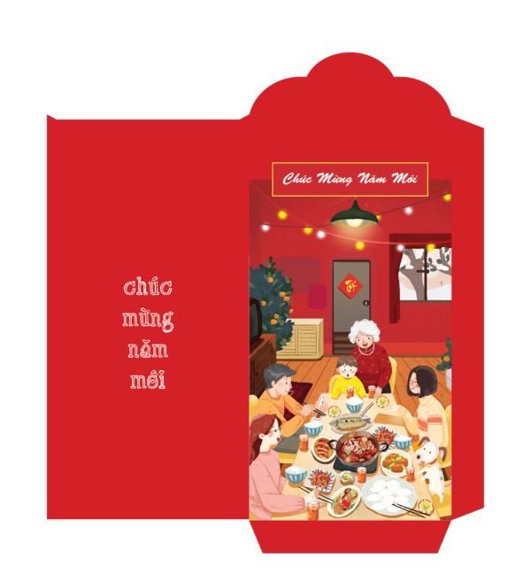 Mẫu bao lì xì chủ đề "bữa cơm sum vầy ngày tết"