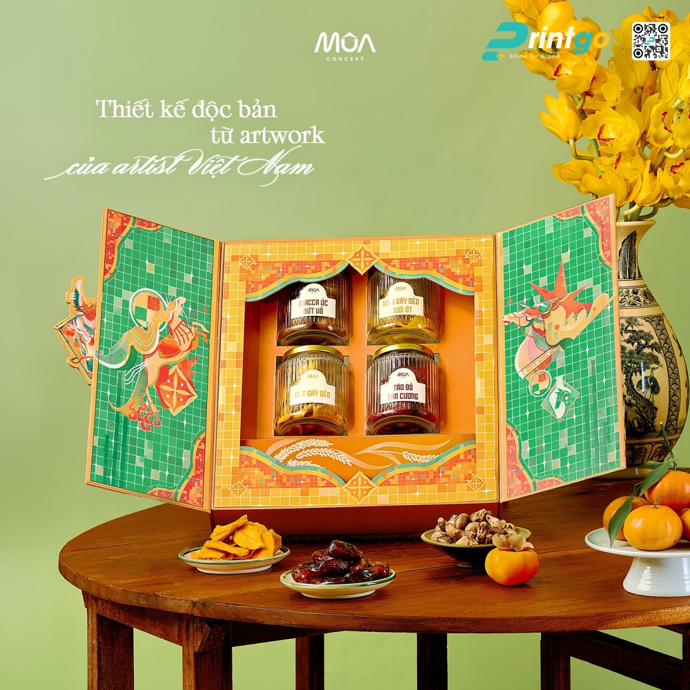 Trong bức tranh sôi động của thị trường quà Tết doanh nghiệp, bao bì ngày nay không còn đóng vai trò đơn thuần là vật chứa, mà đã trở thành ngôn ngữ kể chuyện, truyền tải tinh thần thương hiệu và tạo nên trải nghiệm cảm xúc cho người nhận. Dự án in hộp quà Tết MÙA Concept là một minh chứng rõ nét cho xu hướng đó. Với định hướng xây dựng thương hiệu quà Tết cao cấp ngay từ mùa đầu tiên ra mắt, MÙA Concept đã lựa chọn Printgo làm đơn vị đồng hành trong quá trình hiện thực hóa một thiết kế độc bản, giàu chiều sâu văn hóa, đòi hỏi cao về kỹ thuật in ấn và gia công. Dự án không chỉ là một sản phẩm in hộp quà Tết, mà còn là sự kết tinh giữa tư duy sáng tạo, bản lĩnh thương hiệu và năng lực sản xuất chuyên nghiệp.