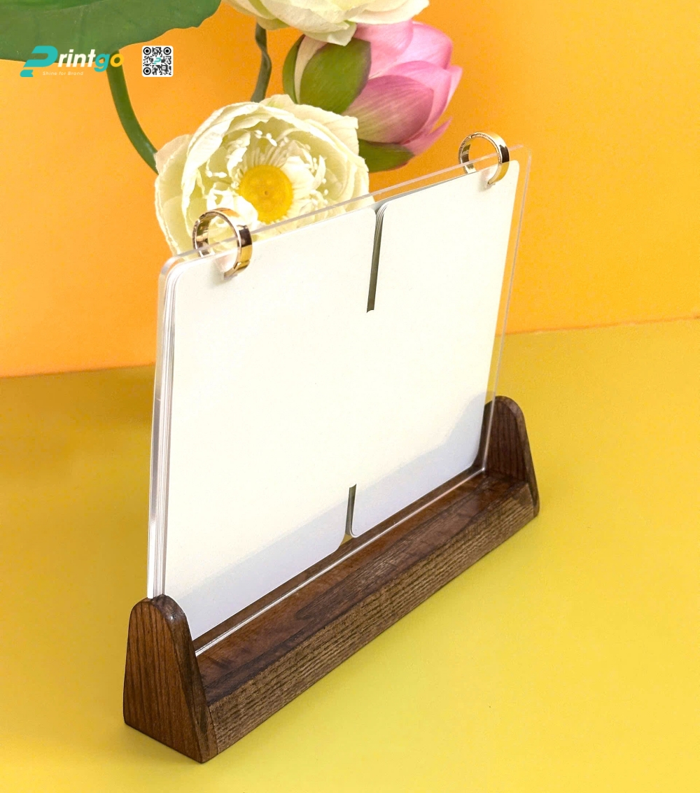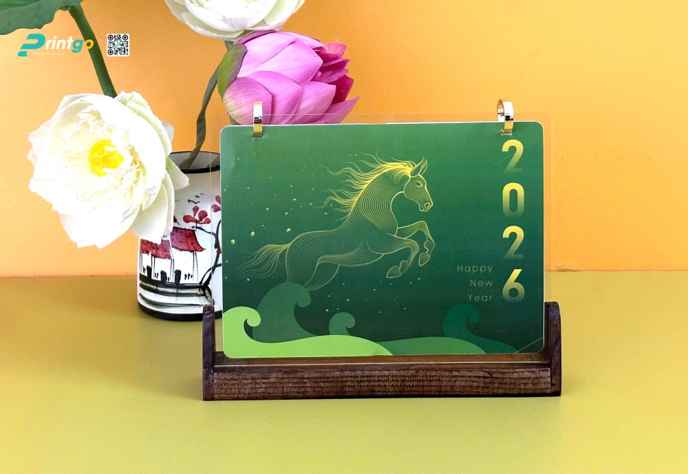 Hơn thế nữa, sản phẩm đáp ứng hoàn hảo nhu cầu về một món quà tặng mang tính lâu dài. Thay vì những tấm lịch giấy mỏng manh dễ bị vứt bỏ sau khi hết năm, phần đế gỗ và giá mica có thể được tái sử dụng cho các năm sau (chỉ cần in lại ruột lịch) hoặc dùng làm khung ảnh để bàn. Đây chính là tư duy "xanh" và tiết kiệm mà Printgo luôn hướng tới trong các giải pháp quà tặng doanh nghiệp.