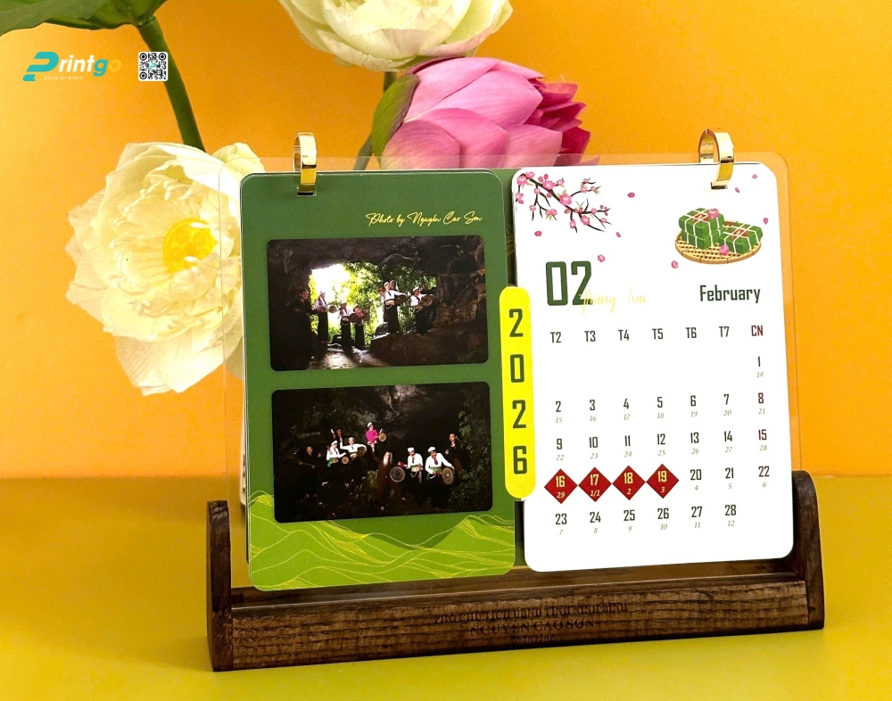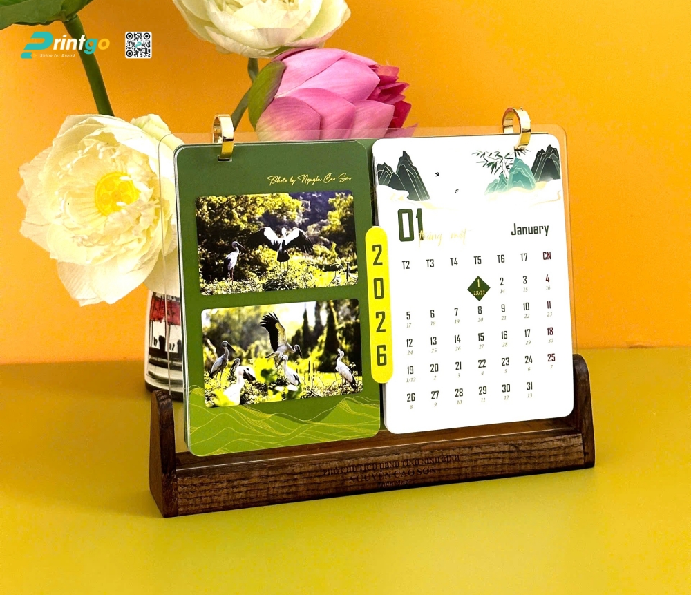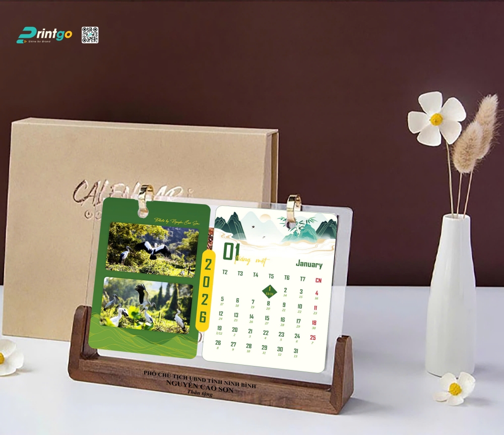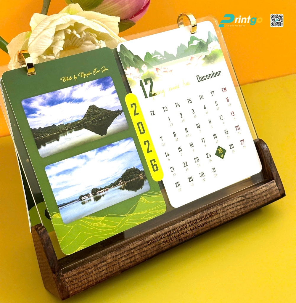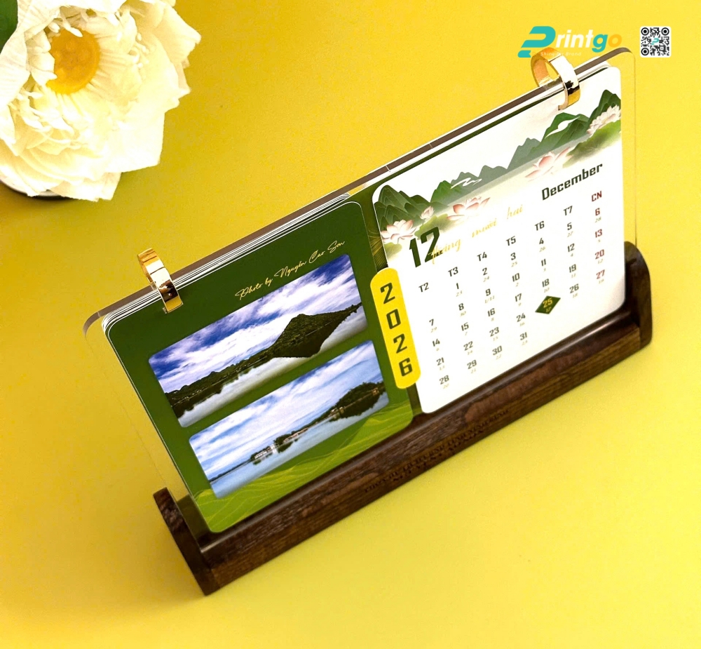 Trong dòng chảy hối hả của cuộc sống hiện đại, lịch Tết không chỉ đơn thuần là công cụ để đo đếm thời gian, mà đã trở thành một nét văn hóa, một điểm chạm nghệ thuật nơi không gian làm việc. Năm 2026 đang đến gần, xu hướng tìm kiếm những ấn phẩm in lịch tết đặc biệt mang đậm dấu ấn cá nhân và chiều sâu văn hóa đang lên ngôi mạnh mẽ. Printgo tự hào giới thiệu dự án hợp tác độc đáo mang tên "Lịch để bàn đế gỗ Ninh Bình" – một tác phẩm kết hợp hoàn hảo giữa nhiếp ảnh nghệ thuật, chất liệu tự nhiên và công nghệ gia công tinh xảo.