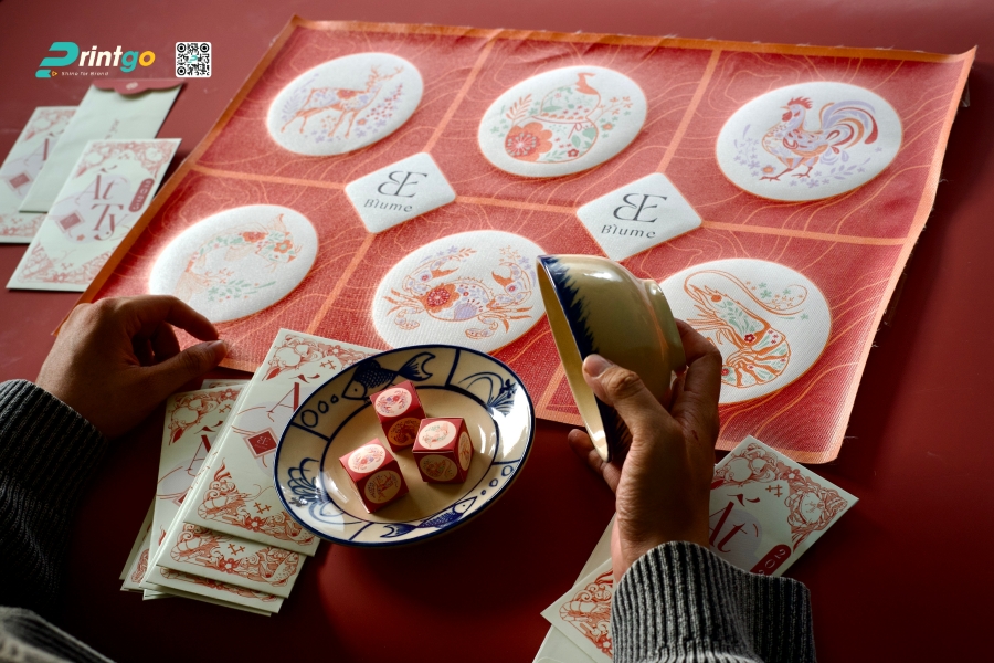Yếu tố đầu tiên quyết định tinh thần của sản phẩm chính là màu sắc. Printgo đã quyết định sử dụng gam màu đỏ rực rỡ làm chủ đạo cho toàn bộ thiết kế. Màu đỏ trong văn hóa Á Đông là biểu trưng tuyệt đối cho may mắn, thịnh vượng, hạnh phúc và năng lượng của năm mới. Đây là màu sắc của bao lì xì, của câu đối, của pháo hoa – màu của Tết.