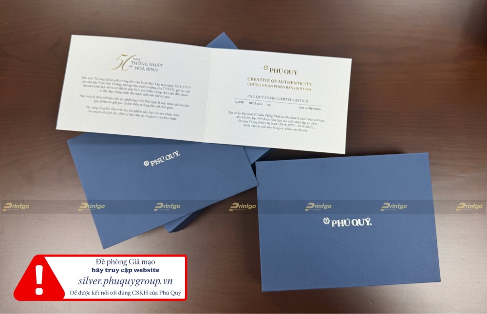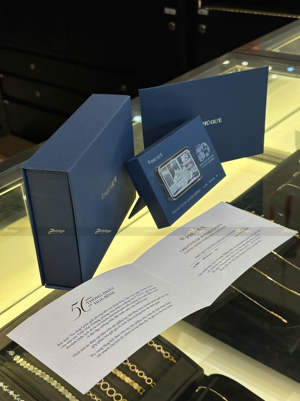 Printgo vinh dự là đơn vị đồng hành trong việc thiết kế và in hộp đựng bạc Phú Quý phiên bản giới hạn này. Mỗi chi tiết trong thiết kế không chỉ phục vụ mục đích bảo vệ và thẩm mỹ mà còn góp phần nâng tầm giá trị lịch sử, cảm xúc và hình ảnh thương hiệu.