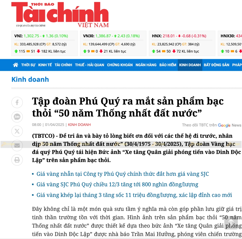 30/04/2025 – đúng 50 năm sau thời khắc lịch sử ấy, cả nước cùng hướng về quá khứ, tri ân những hy sinh to lớn của thế hệ cha ông và thêm quyết tâm gìn giữ thành quả của tự do hôm nay. Trong không khí linh thiêng và đầy cảm xúc ấy, Phú Quý Silver đã cho ra mắt sản phẩm bạc thỏi phiên bản giới hạn, khắc họa chính hình ảnh chiếc xe tăng tiến vào Dinh Độc Lập – như một lời nhắc nhở sâu sắc về những giá trị cốt lõi mà thế hệ hôm nay cần trân quý.