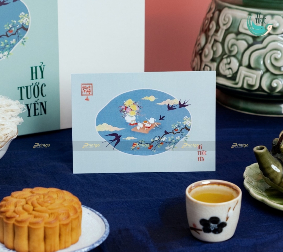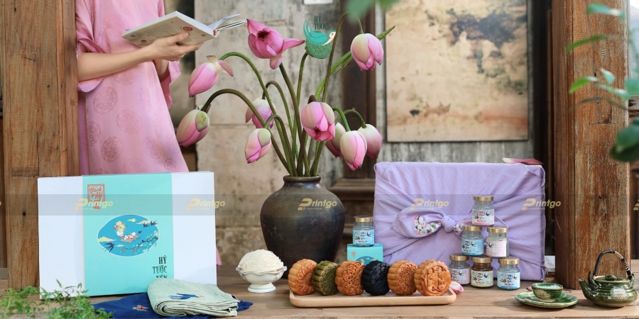 Để mang đến trải nghiệm thú vị cho người dùng, Printgo đã thiết kế thêm đai hộp, tạo nên một "bữa tiệc Trung Thu" thịnh soạn với hình ảnh bánh trung thu, trà, hoa cúc và chim yến. Đai hộp không chỉ tăng thêm tính thẩm mỹ cho sản phẩm mà còn gợi lên không khí ấm áp và sum vầy của Tết Trung Thu.