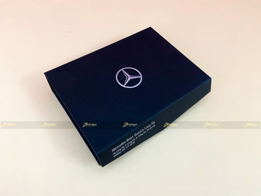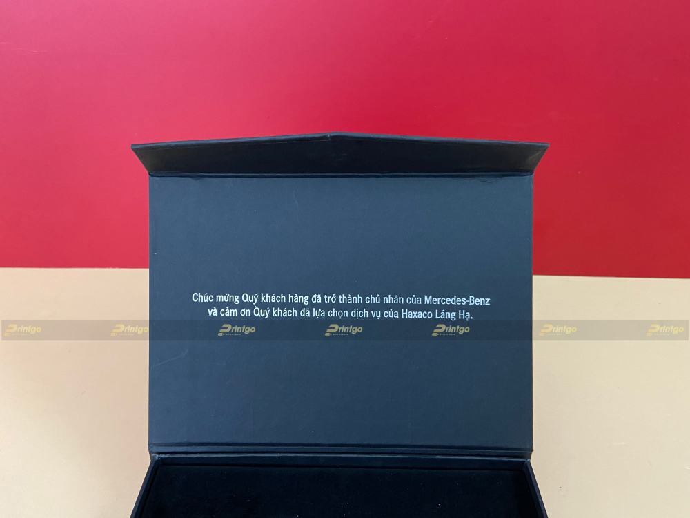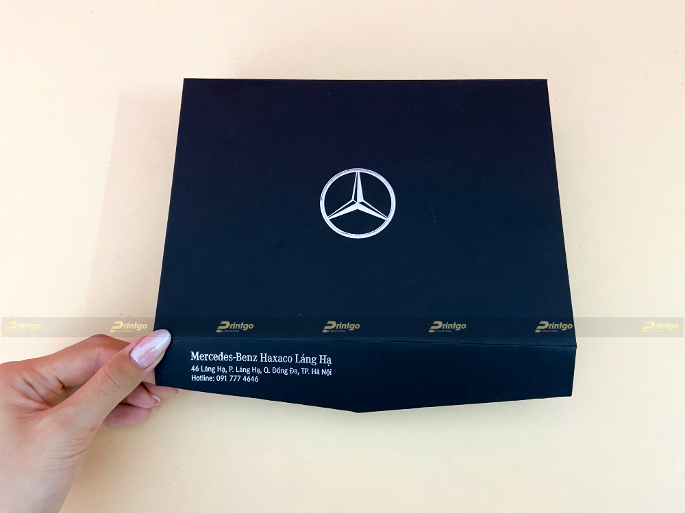 Hộp chìa khoá sau khi hoàn thiện được đánh giá cao cả về mặt thẩm mỹ lẫn cảm nhận khi sử dụng: logo sắc nét, bề mặt giấy mỹ thuật sang trọng, khay đựng bế chuẩn xác và đặc biệt là hiệu ứng ánh kim từ lớp ép nhũ bạc đã tạo nên điểm nhấn nổi bật, mang lại trải nghiệm đẳng cấp cho người sở hữu. Không chỉ là một chiếc hộp đơn thuần, sản phẩm này đã thực sự trở thành một phần của trải nghiệm thương hiệu Mercedes – nơi mọi chi tiết đều phải truyền tải được tinh thần tinh tế và đẳng cấp.