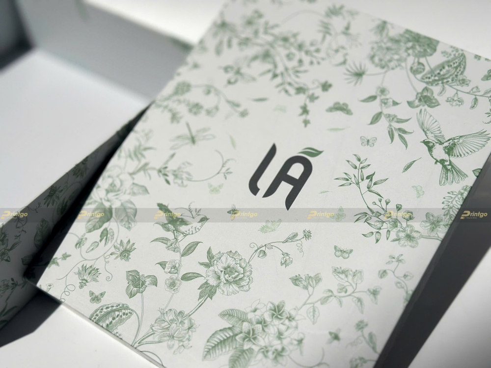 Thời gian đầu, Nhà Lá sử dụng những chiếc hộp quà thông thường, đại trà để đóng gói sản phẩm. Tuy nhiên, qua quá trình phát triển và nhận thấy rằng việc ghi dấu và truyền thông thương hiệu là điều vô cùng quan trọng, Nhà Lá quyết định liên hệ với Printgo để thiết kế một chiếc hộp đựng quà lưu niệm độc quyền. Hộp quà này không chỉ là phương tiện bảo vệ sản phẩm mà còn là cầu nối giúp kể câu chuyện về thương hiệu Nhà Lá, gửi gắm thông điệp về sự tinh tế, tôn vinh vẻ đẹp tự nhiên và những giá trị kỷ niệm đáng nhớ trong từng món quà.