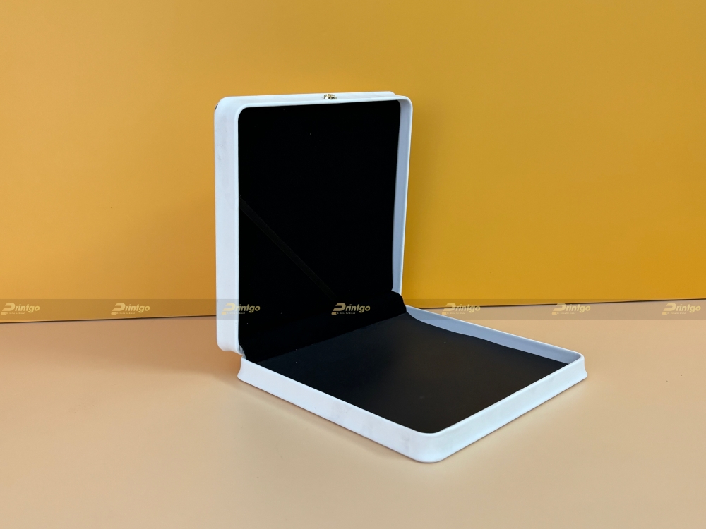 Để bảo vệ những món trang sức quý giá, hộp được thiết kế với cấu trúc phôi nhựa chắc chắn, kết hợp cùng lẫy gập tinh tế, mang đến sự an tâm và tiện lợi cho người sử dụng. Bên ngoài, lớp nhung mềm mại bao phủ, không chỉ tạo cảm giác cao cấp và sang trọng mà còn giúp hạn chế trầy xước, nâng niu từng món trang sức. Sự kết hợp giữa chất liệu phôi nhựa và nhung tạo nên một tổng thể hoàn hảo, vừa đảm bảo tính thẩm mỹ, vừa bảo vệ tối ưu cho sản phẩm bên trong.