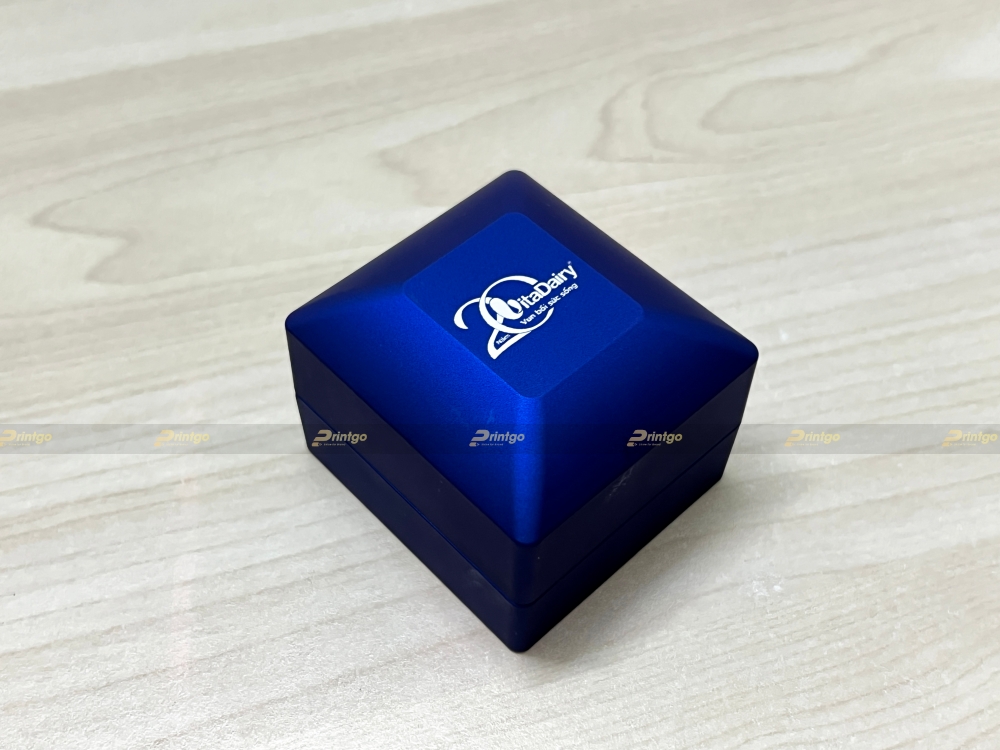 Để ghi dấu ấn đặc biệt trong dịp kỷ niệm 20 năm thành lập, Printgo đã triển khai in UV logo 20 năm Vitadairy lên bề mặt hộp đựng trang sức. In hộp đựng trang sức với kỹ thuật in UV tiên tiến, giúp tạo ra các chi tiết sắc nét, bền màu và có độ bám tốt. Phương pháp này đảm bảo rằng logo của Vitadairy sẽ luôn nổi bật và rõ ràng trên mỗi sản phẩm, giúp khách hàng dễ dàng nhận diện thương hiệu, đồng thời tạo ra sự sang trọng, đẳng cấp cho món quà tặng.