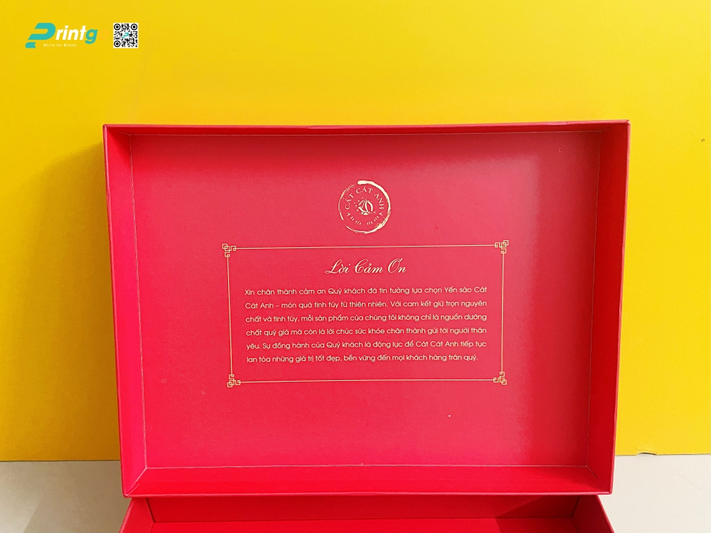 Dự án thiết kế và in hộp yến sào cho Cát Cát Anh là minh chứng rõ nét cho khả năng cá nhân hóa thiết kế và tư duy linh hoạt của Printgo. Từ concept màu sắc, bố cục hình ảnh, lựa chọn quy cách hộp cho đến phối hợp chất liệu, từng chi tiết đều được triển khai có chiến lược và cam kết đồng hành đến cùng để thương hiệu mới bước ra thị trường một cách bài bản và đầy sức thuyết phục. Đối với chúng tôi, mỗi chiếc hộp không đơn thuần là một vỏ bọc – mà là một bản sắc, một tuyên ngôn thẩm mỹ và là khởi đầu cho một hành trình thương hiệu đáng nhớ.