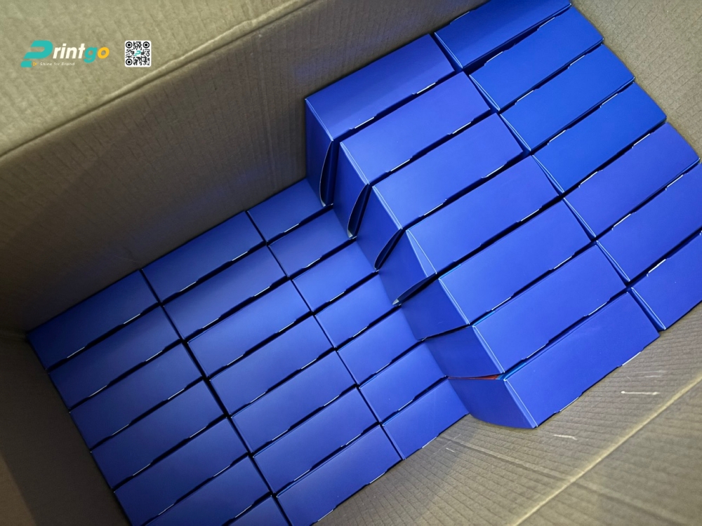 Để tạo nên sự vững chãi đó, Printgo sử dụng Carton lạnh làm cốt lõi. Đây là vật liệu giấy cao cấp được nén ở mật độ cao, tạo nên một kết cấu cứng cáp tuyệt đối. Tác dụng của nó là định hình phom dáng hộp một cách vuông vức, sắc cạnh, không bị ọp ẹp hay cong vênh, ngay cả khi vận chuyển đường dài quốc tế. Lớp "áo" bên ngoài được bồi bằng giấy Couche. Với bề mặt láng mịn, bắt mực hoàn hảo lý tưởng để tái hiện các mảng màu xanh, cam một cách chuẩn xác, đồng thời đủ dẻo dai để bồi lên cốt carton mà không làm gãy hay rạn bề mặt.