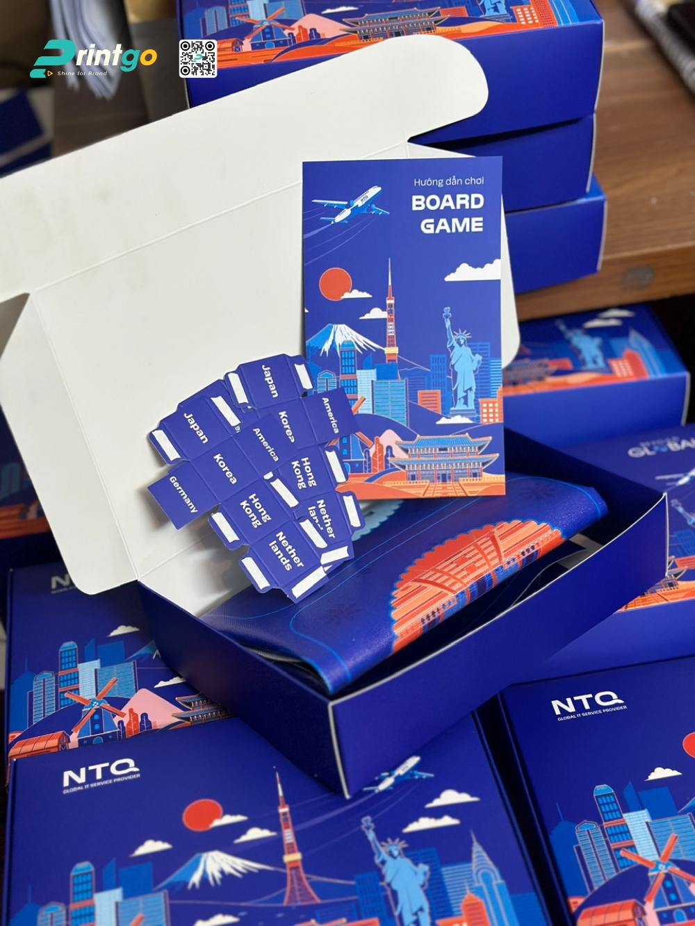 Đây chính là "ngôi sao" của bộ quà tặng, một sản phẩm in board game được "đo ni đóng giày" 100% cho NTQ. Việc đưa một board game vào hộp quà Tết là một bước đi cực kỳ thông minh. Nó biến món quà từ "tĩnh" sang "động", từ một vật phẩm tri ân thành một công cụ gắn kết. Với một doanh nghiệp công nghệ có đội ngũ nhân sự trẻ, năng động như NTQ, một board game giải trí, mang tính đồng đội là món quà không thể phù hợp hơn.