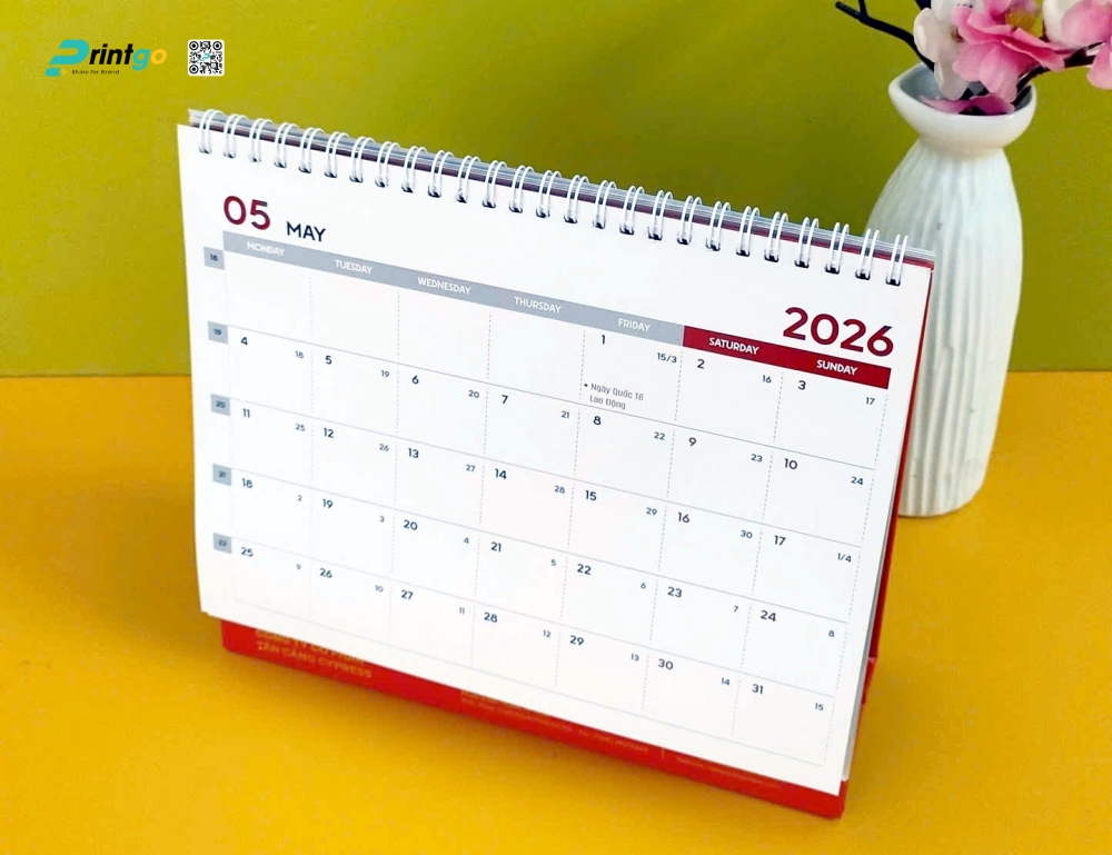 Đối với một sản phẩm mang tính công năng như lịch để bàn, sự tiện dụng luôn là ưu tiên hàng đầu. Phần thiết kế bộ số được Printgo bố trí theo phong cách tối giản, thoáng đạt và khoa học. Các ô ngày tháng có khoảng trống đủ rộng, cho phép người dùng dễ dàng ghi chú nhanh các công việc, lịch họp hay đánh dấu những ngày kỷ niệm quan trọng. Đây là chi tiết nhỏ nhưng thể hiện sự thấu hiểu sâu sắc nhu cầu thực tế của dân văn phòng.