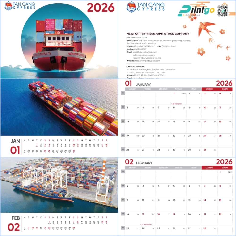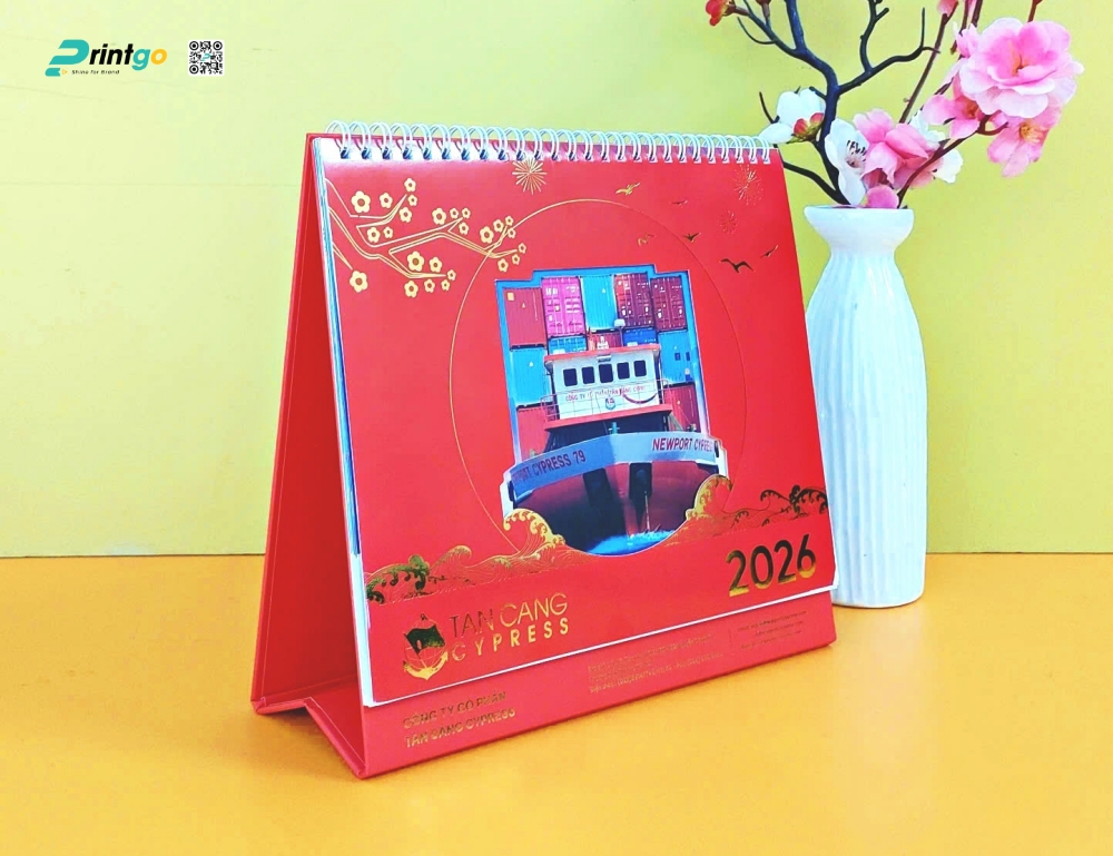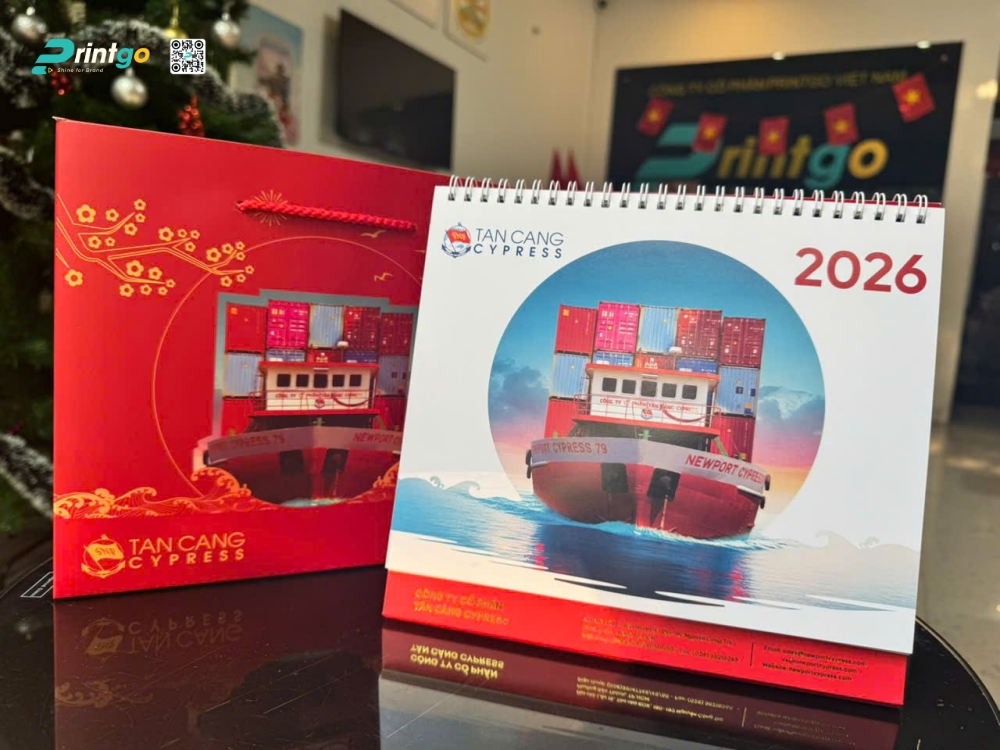 Trong nhịp sống hối hả của những ngày cuối năm, khi các doanh nghiệp đang chạy đua với thời gian để tổng kết những thành tựu đã qua, thì việc chuẩn bị quà Tết lại trở thành một "khoảng lặng" đầy ý nghĩa để tri ân và gắn kết. Năm 2026 đang đến gần, đánh dấu một chu kỳ mới với nhiều hy vọng bứt phá. Trong bối cảnh đó, Printgo vinh dự được Công ty Cổ phần Vận tải biển Tân Cảng Cypress tin tưởng lựa chọn là đối tác chiến lược để thực hiện dự án thiết kế và in lịch Tết 2026 độc quyền. Đây không đơn thuần là một ấn phẩm xem ngày tháng, mà là một câu chuyện kể về hành trình vươn ra biển lớn, về bản lĩnh của những con tàu rẽ sóng, được hiện thực hóa qua ngôn ngữ của thiết kế và công nghệ in lịch để bàn tiên tiến nhất.
