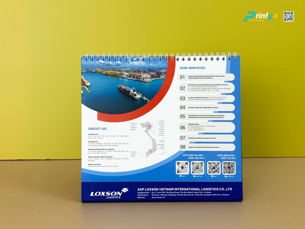 Trong bối cảnh các doanh nghiệp ngày càng chú trọng đến tính đồng bộ và chiều sâu trong truyền thông thương hiệu, lịch Tết không còn đơn thuần là một ấn phẩm mang tính thời vụ, mà đã trở thành công cụ nhận diện hiện diện xuyên suốt cả năm. Dự án thiết kế và in lịch Tết LOXSON logistics 2026 do Printgo thực hiện là một ví dụ tiêu biểu cho cách doanh nghiệp logistics đầu tư bài bản vào ấn phẩm đầu năm, nhằm truyền tải hình ảnh chuyên nghiệp, hiện đại và quy mô quốc tế.