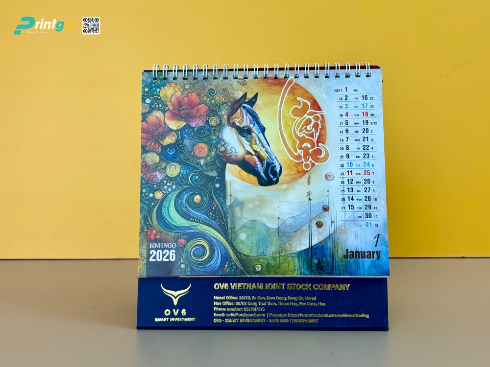 Trong thế giới tài chính, nơi mọi quyết định được đo lường bằng tốc độ, dữ liệu và hiệu suất, các giá trị truyền thống đôi khi được cho là sẽ lùi về phía sau. Tuy nhiên, dự án thiết kế và in lịch tết OV6 Smart Investment năm 2026 lại là một minh chứng hùng hồn cho điều ngược lại. Đây là một case study đặc biệt, nơi một thương hiệu tài chính công nghệ cao, nhạy bén đã lựa chọn một ấn phẩm mang giá trị truyền thống – bộ lịch Tết – để kể câu chuyện về niềm tin, sự thịnh vượng và mối liên kết bền vững. Printgo tự hào là đối tác chiến lược, được "chọn mặt gửi vàng" để hiện thực hóa một dự án in lịch tết không chỉ sang trọng về hình thức mà còn sâu sắc về thông điệp, tạo nên một "điểm chạm" thương hiệu đắt giá trong ngành lịch tết tài chính.