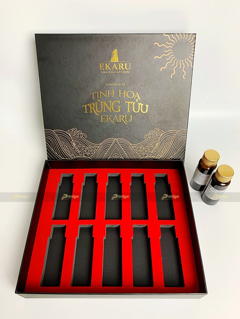Từ xưa đến nay, đông trùng hạ thảo vốn được biết đến là dược phẩm quý hiếm nổi tiếng với nhiều công dụng thần kỳ cho sức khỏe của người sử dụng. Không những mang lại giá trị dinh dưỡng cao, đạt hiệu quả trong việc chăm sóc sức khỏe, đông trùng hạ thảo còn mở ra cơ hội kinh doanh thu về lợi nhuận khủng cho các doanh nghiệp biết tận dụng lợi thế. Ngày nay, đông trùng hạ thảo còn được sử dụng như một món quà giá trị và ý nghĩa được người tiêu dùng tin tưởng lựa chọn gửi tặng đến những người thân yêu của mình. Sản phẩm cao cấp như vậy khi được đặt trong bao bì xứng tầm chắc chắc sẽ thức quà gửi gắm trọn vẹn thông điệp từ người tặng. Chính từ ý nghĩa đó, Ekaru đã hợp tác cùng Printgo cho ra mắt bộ bao bì đựng đông trùng hạ thảo cao cấp, ghi dấu ấn thương hiệu.