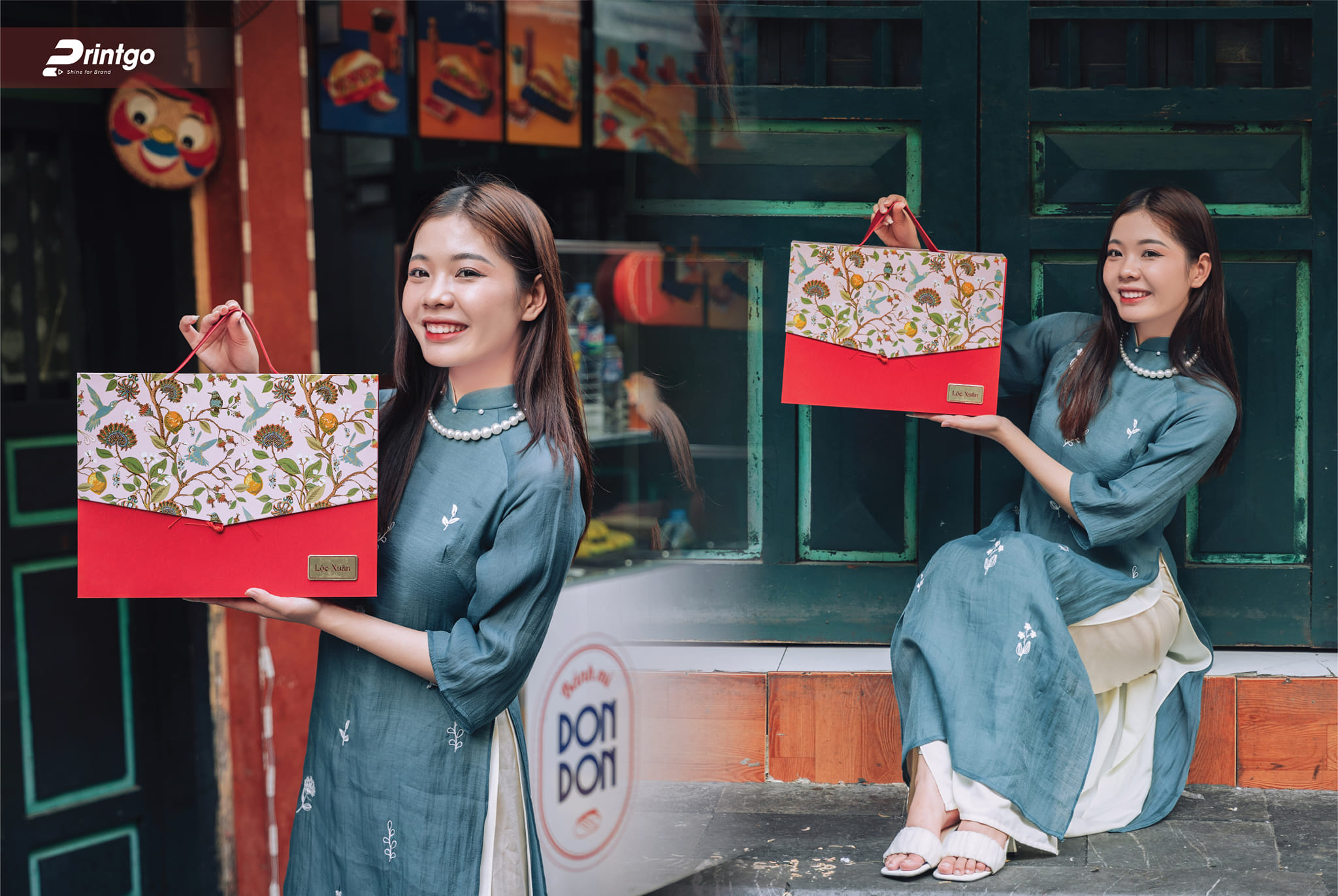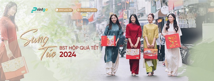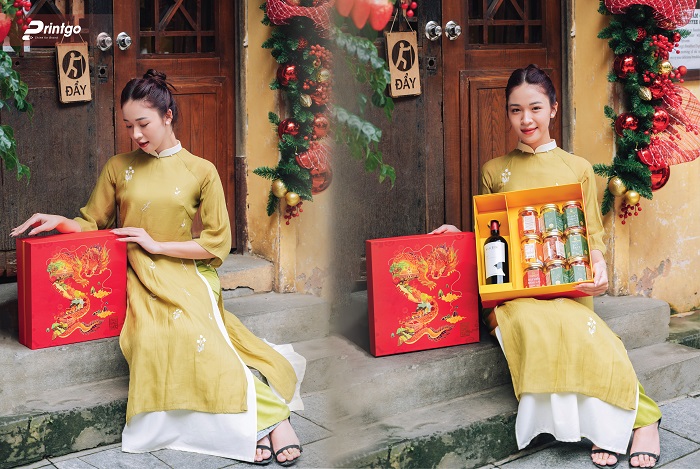 Lấy cảm hứng từ chủ đề Sung Túc, Printgo nhẹ nhàng thổi hồn vào ý tưởng thiết kế của các mẫu hộp quà Tết. Phiên chợ Tết nét đặc trưng của ngày Tết Việt Nam, Chuyến tàu Đoàn Tụ nơi gắn kết tình thân, Lộc Xuân vẻ đẹp mơn mởn của ngày xuân, Ngự Long Quốc linh vật của Tết giáp Thìn…..