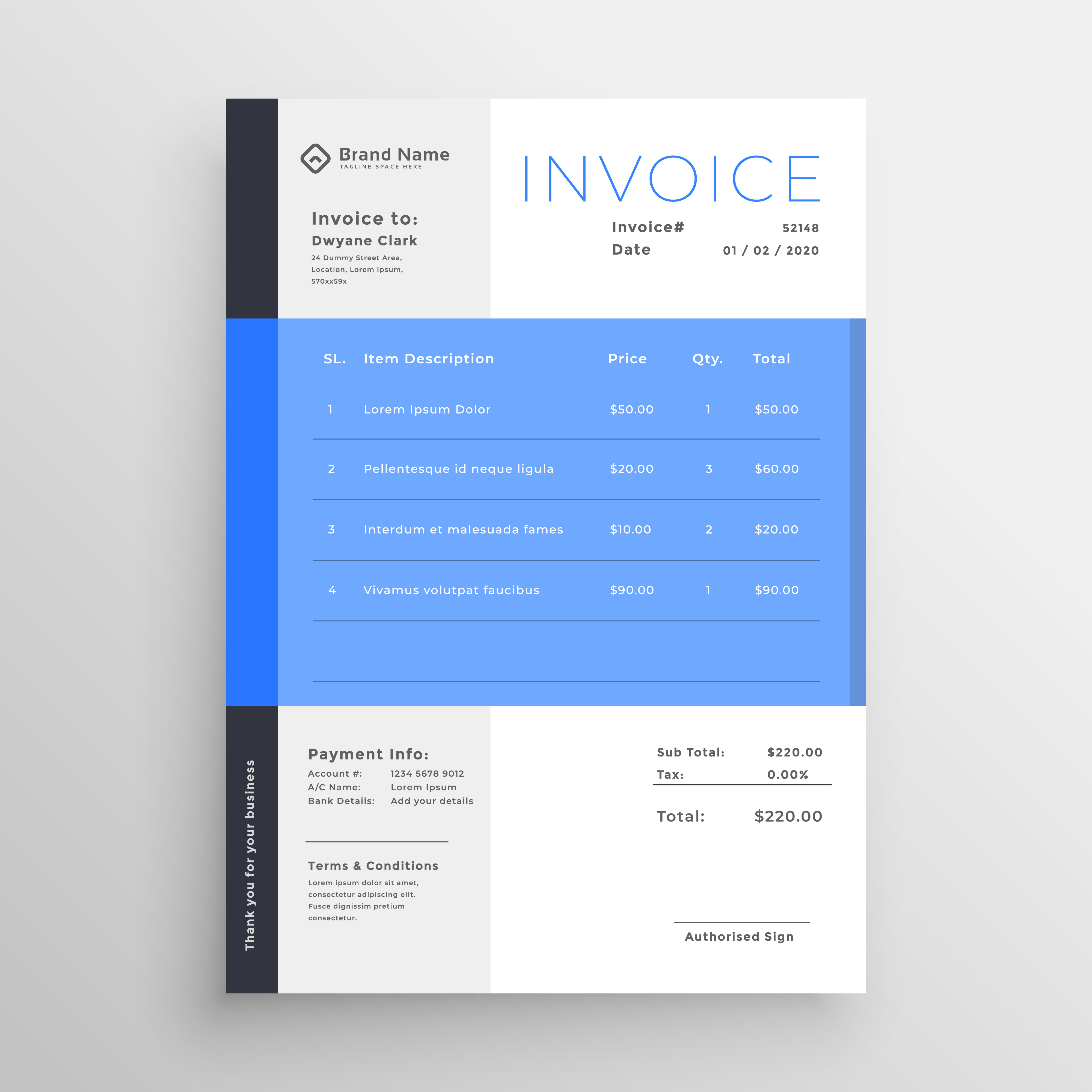 Mẫu hóa đơn FIK-BIL 000099 là một mẫu được thiết kế theo phong cách trẻ trung và năng động với việc kết hợp các màu sắc hài hoà: xanh dương, xám trên nền trắng. Logo được đặt riêng biệt nổi bật ở góc trái bởi nền xám. Phần thông tin, số liệu được tách biệt với tên của doanh nghiệp để dễ dàng trong việc tiếp nhận thông tin. Hơn nữa mỗi một dòng lại được điểm bằng màu sắc xen kẽ nhau đã tạo nên được một sự đặc biệt nhất định cho mẫu hoá đơn này. Bên dưới hóa đơn có phần dành cho chữ kí xác nhận của khác hàng. Mẫu FIK-BIL 000099 được thiết kế rất phù hợp cho các lĩnh vực kinh doanh, du lịch hay nhà hàng,...