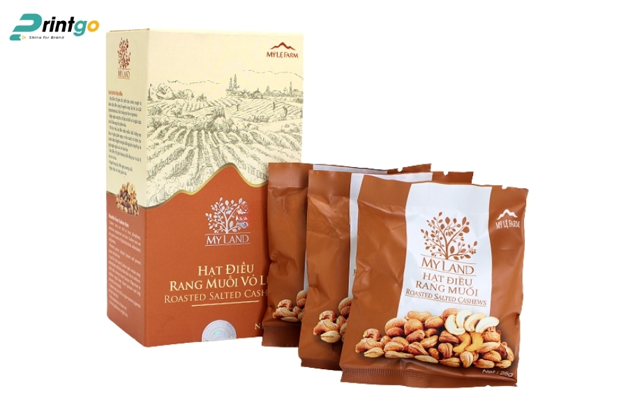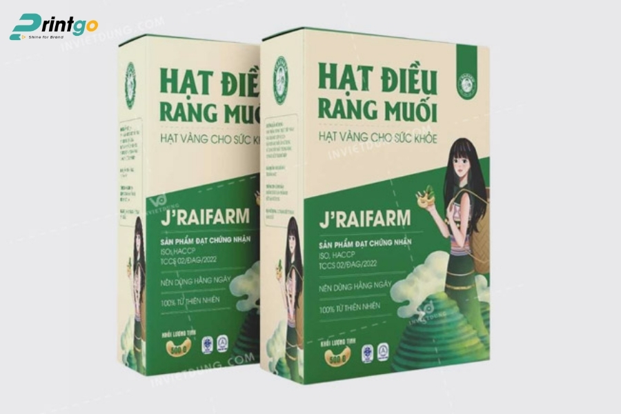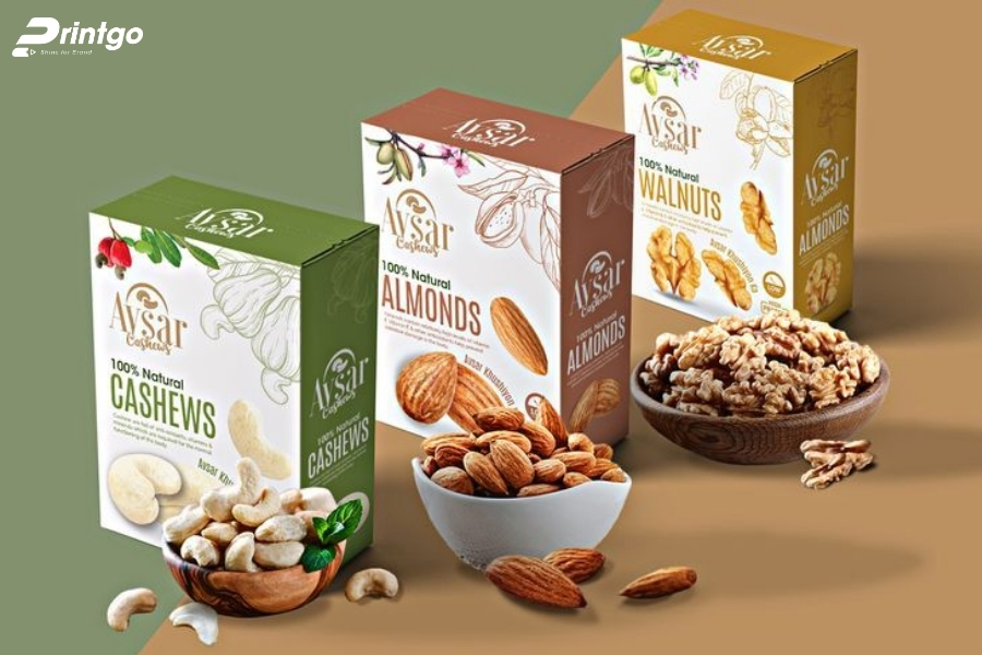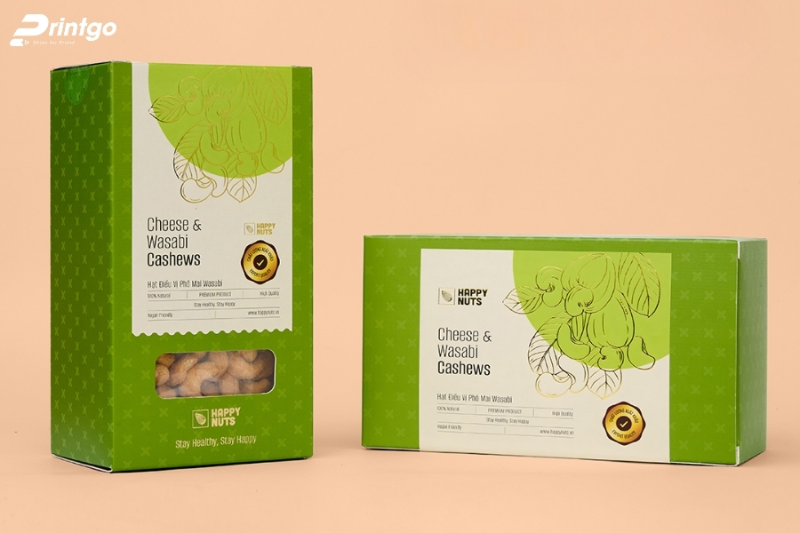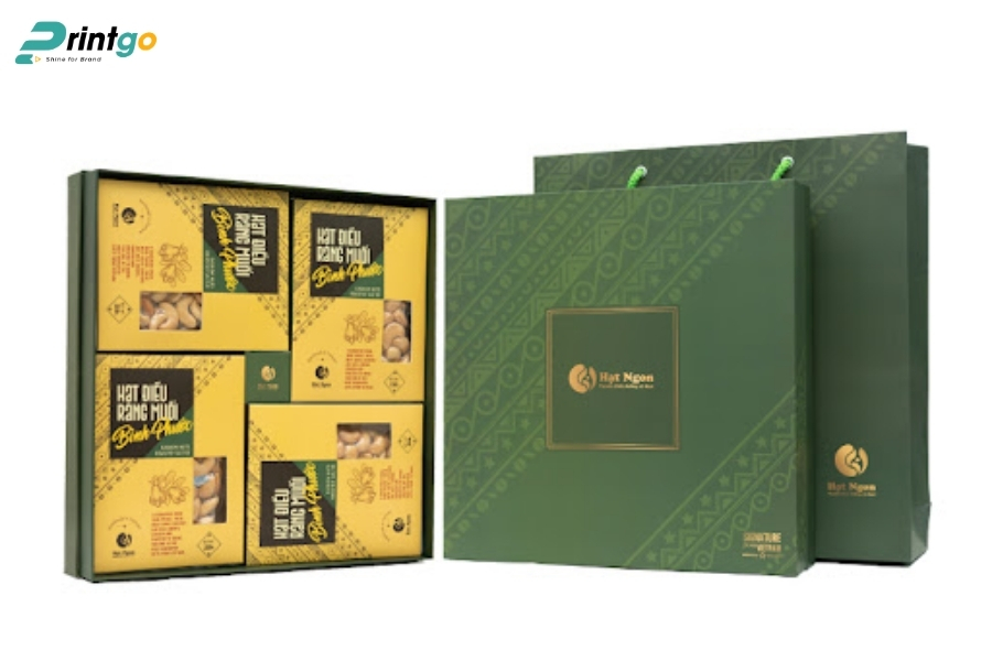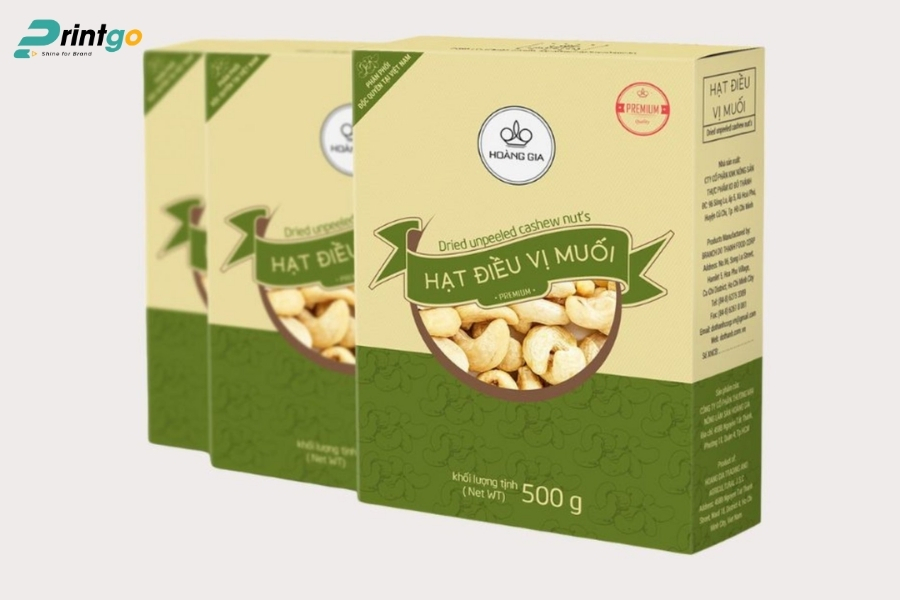Hộp giấy đựng hạt điều không chỉ là lớp vỏ bảo vệ sản phẩm, mà còn là điểm chạm đầu tiên giúp tạo ấn tượng với khách hàng, đặc biệt khi hướng tới thị trường xuất khẩu. Trong năm 2025, xu hướng thiết kế bao bì đã có nhiều thay đổi để phù hợp hơn với yêu cầu từ các thị trường lớn như EU, Mỹ, Nhật Bản… Bài viết dưới đây Printgo sẽ giới thiệu đến bạn hơn 500 mẫu thiết kế hộp đựng hạt điều chuẩn quốc tế, giúp bạn có thêm ý tưởng và định hướng rõ ràng hơn cho sản phẩm của mình.