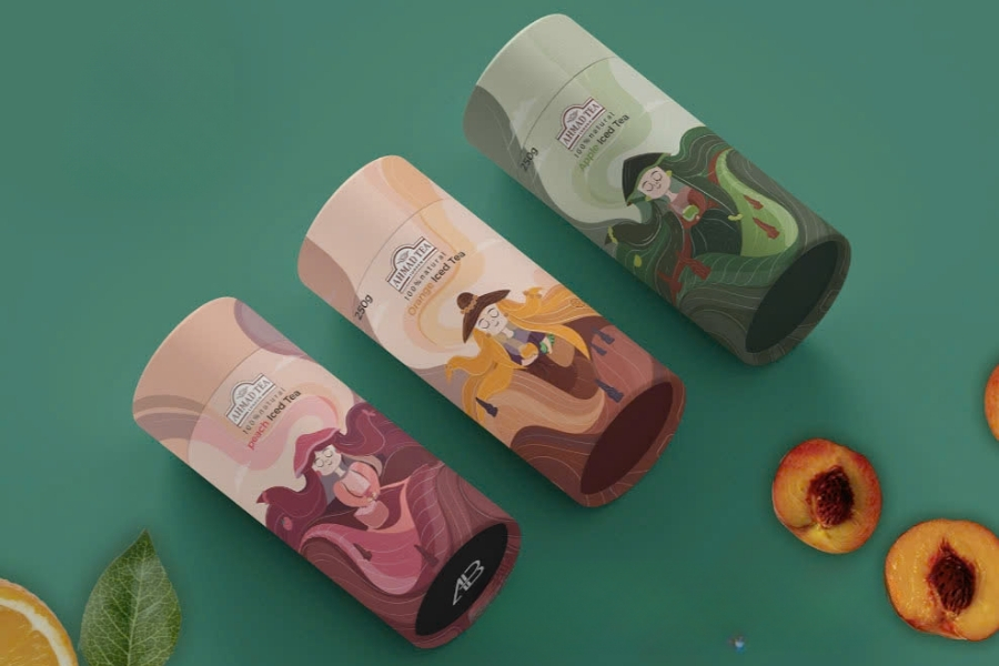 Thiết kế hộp giấy đựng hạt điều dạng ống trụ tròn chắc chắn, miệng hộp khóa nắp thiếc hoặc nhựa. Chất liệu giấy duplex có lớp chống ẩm bên trong. Thể tích thường thấy từ 100g – 250g, tạo sự khác biệt trên kệ trưng bày.