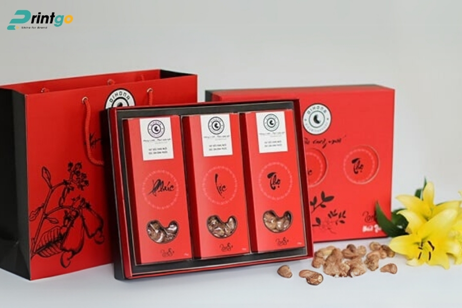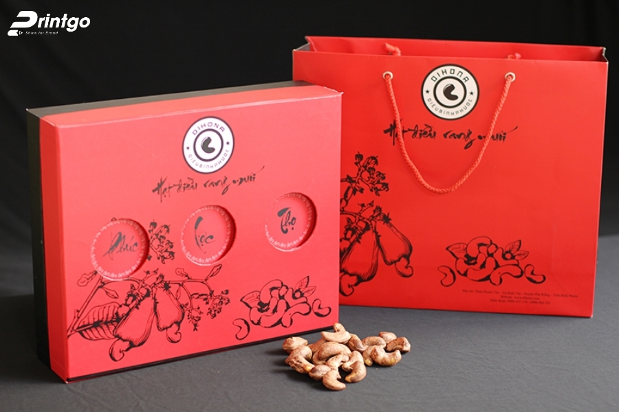 Với những dòng hạt điều cao cấp, thiết kế hộp giấy đựng hạt điều sang trọng chính là “chìa khóa” để nâng tầm giá trị sản phẩm. Sự kết hợp tinh tế giữa gam màu thanh lịch, chi tiết in dập nổi hay mạ vàng ánh kim sẽ mang đến vẻ ngoài đẳng cấp, phù hợp làm quà biếu tặng và khẳng định uy tín thương hiệu.