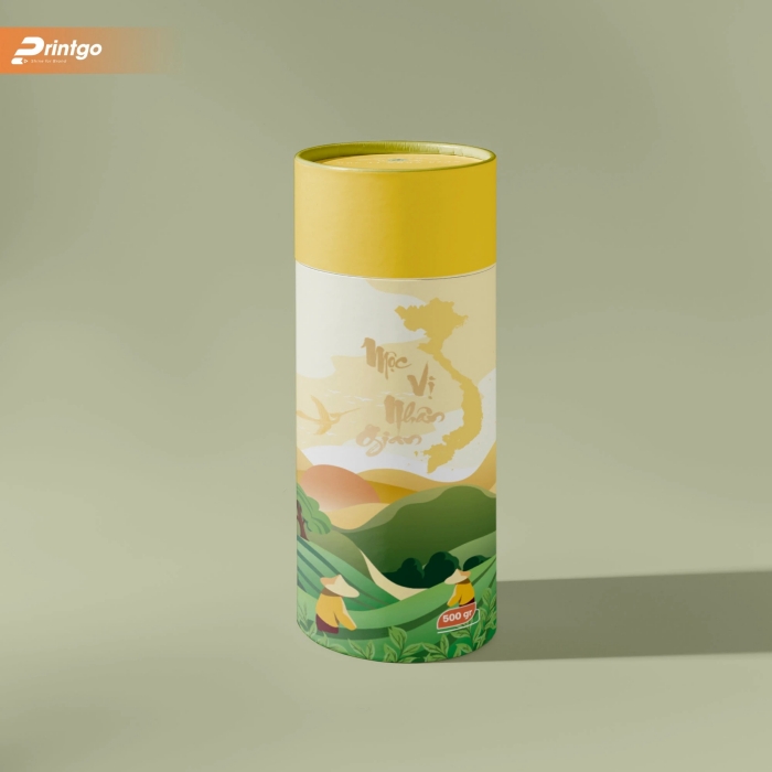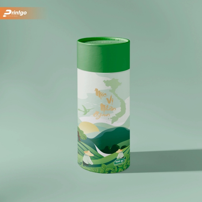 Ngoài ra, Printgo nhận thiết kế và sản xuất hộp giấy tròn đựng trà theo size yêu cầu, đảm bảo phù hợp tuyệt đối với từng dòng sản phẩm của doanh nghiệp.
