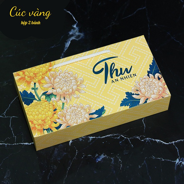 Hộp giấy đựng 2 bánh trung thu FIK-PB 010001 được thiết kế với màu sắc chủ đạo là màu vàng nhạt của hoa cúc. Họa tiết sử dụng chính trên bề mặt hộp là hình ảnh những bông hoa cúc - biểu tượng cho sự trường thọ, phúc lộc, hiếu thuận và sự an lành trong cuộc sống. Họa tiết và màu sắc được kết hợp hài hòa đem đến cảm giác nhẹ nhàng, mang đậm nét truyền thống dân tộc. Đặc biệt thông điệp "Thu An Nhiên" in trên hộp mang ý nghĩa chúc cho một mùa trung thu an lành sẽ truyền tải lời yêu thương, chúc phúc đến người sử dụng.