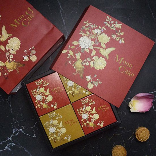 Để đồng bộ với thiết kế hộp đựng bên ngoài, những hộp bánh con bên trong cũng được thiết kế cầu kỳ với sắc đỏ, vàng đan xen trông rất lạ mắt và gây ấn tượng ngay từ lần đầu tiên nhìn thấy.