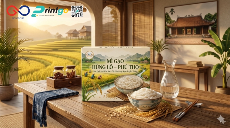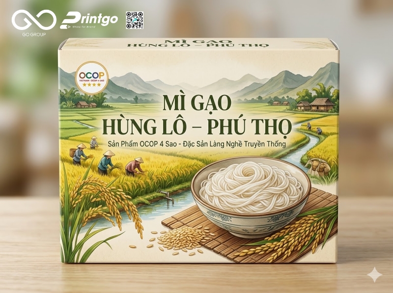 Trong bối cảnh thị trường nông sản ngày càng cạnh tranh, bao bì không chỉ đóng vai trò bảo quản sản phẩm mà còn trở thành “cầu nối” giúp thương hiệu truyền tải câu chuyện và giá trị vùng miền đến người tiêu dùng. Đối với mì gạo Hùng Lô Phú Thọ, một đặc sản mang đậm dấu ấn truyền thống, việc đầu tư vào thiết kế và in bao bì chuyên nghiệp chính là bước đi quan trọng để nâng tầm hình ảnh và mở rộng thị trường tiêu thụ. Thấu hiểu điều đó, Printgo mang đến mẫu bao bì nông sản đựng mì gạo Hùng Lô được thiết kế chỉn chu, giàu tính thẩm mỹ, giúp sản phẩm nổi bật hơn, từ đó tạo ấn tượng mạnh với người tiêu dùng và khẳng định vị thế thương hiệu trên thị trường.