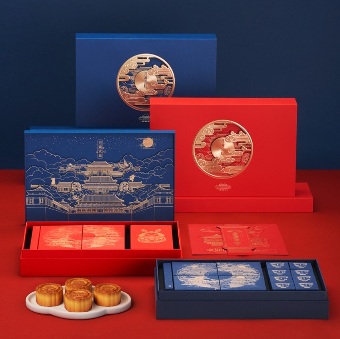 Mẫu hộp này gồm hai màu đỏ và xanh dương. Đây đều là những màu sắc tượng trưng cho sự quyền quý, hạnh phúc.