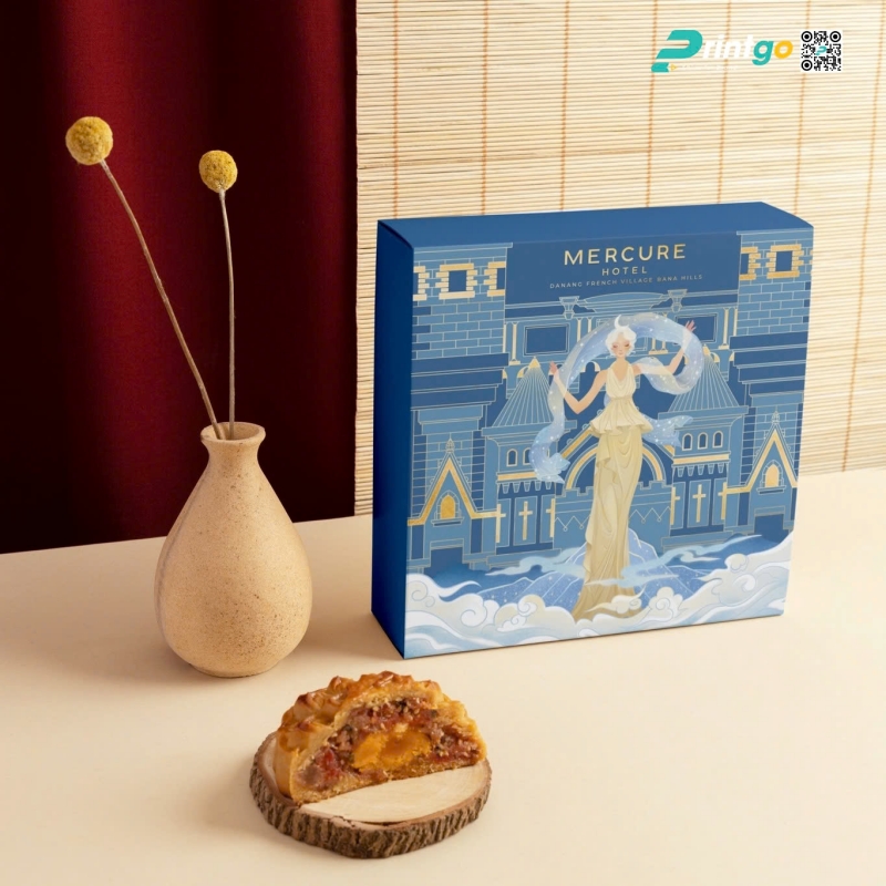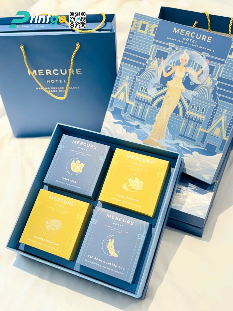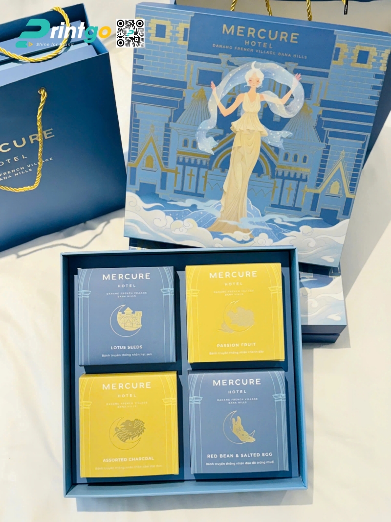 Mỗi mùa trăng về, nghệ thuật quà tặng lại được nâng tầm bởi những thiết kế bao bì tinh xảo. Đồng hành cùng khách sạn Mercure, Printgo mang đến mẫu hộp âm dương có đai đựng 4 bánh trung thu vừa sang trọng, vừa tiện dụng. Không chỉ đảm bảo bảo quản trọn vẹn hương vị bánh, thiết kế còn trở thành điểm nhấn thẩm mỹ giúp khẳng định phong cách đẳng cấp của thương hiệu khách sạn quốc tế, đồng thời truyền tải trọn vẹn thông điệp đoàn viên trong mùa lễ hội trăng rằm.