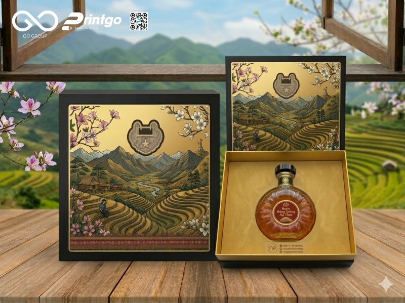 Rượu Đông trùng hạ thảo Điện Biên không chỉ là sản phẩm giàu giá trị mà còn mang theo câu chuyện về vùng đất và tinh hoa dược liệu Tây Bắc. Trong thị trường quà tặng ngày càng cạnh tranh, một thiết kế bao bì chỉn chu, khác biệt chính là yếu tố giúp sản phẩm nổi bật và tạo thiện cảm ngay từ ánh nhìn đầu tiên. Nắm bắt xu hướng đó, Printgo giới thiệu mẫu hộp âm dương đựng rượu Đông trùng hạ thảo đặc sản Điện Biên với thiết kế sang trọng, tinh tế, góp phần nâng tầm hình ảnh sản phẩm và hỗ trợ doanh nghiệp xây dựng thương hiệu một cách chuyên nghiệp, bền vững.