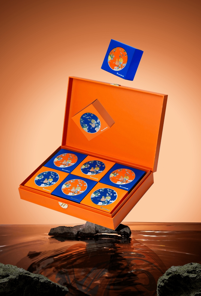 Hộp bánh trung thu Vũ khúc trăng rằm là sự kết hợp tinh tế giữa ý tưởng độc đáo trên nền chủ đạo cam-xanh dương và quy cách sang trọng. Hộp âm dương là một trong các thiết kế hiện đại được ưa chuộng trong những năm gần đây bởi ưu điểm tuyệt vời của nó. Phần nắp trên (dương) được thiết kế vừa vặn, liên kết với phần đáy (âm) có sức chứa 6 bánh, vừa thuận tiện trong thao tác đóng mở hộp vừa mang lại vẻ ngoài tinh tế. Bên cạnh đó, sản phẩm còn tích hợp bản lề có móc khóa kim loại bạc tạo sự chắc chắn cũng như đảm bảo chất lượng sản phẩm bên trong.