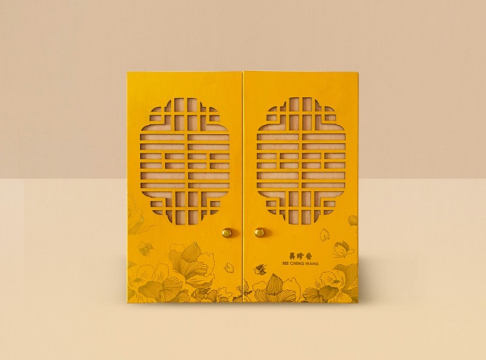 Với yêu cầu: sang trọng, độc quyền, hộp bánh trung thu lấy ý tưởng từ bộ long bào (áo của vua chúa thời xưa) với màu vàng đặc trưng. Nó như toát lên được vẻ sang trọng, thanh cao từ những chi tiết nhỏ nhặt nhất, nâng tầm giá trị cho món quà. Màu vàng tựa như ánh nắng mùa thu mang đến sự ấm áp, ngụ ý cho hạnh phúc sum họp, thích hợp để làm quà tặng.
