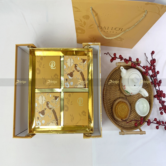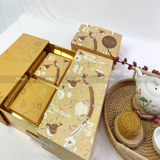 Mùa Trung Thu 2021 này, Đại Lợi Bakery đã tin tưởng lựa chọn Printgo là người bạn đồng hành để thiết kế và in ấn hộp bánh Trung Thu. Mẫu hộp bánh Trung Thu của Đại Lợi rất sáng tạo và độc đáo, phù hợp để kinh doanh, gửi tặng cho đối tác, khách hàng hoặc nhân viên. Hộp bánh Trung Thu chân đứng 4 bánh PG-HĐL-01 có thiết kế vô cùng bắt mắt và độc lạ với đầy đủ từ hộp đựng bánh, hộp con và túi giấy phù hợp với nhiều mục đích như kinh doanh hay gửi tặng đối tác, nhân viên.