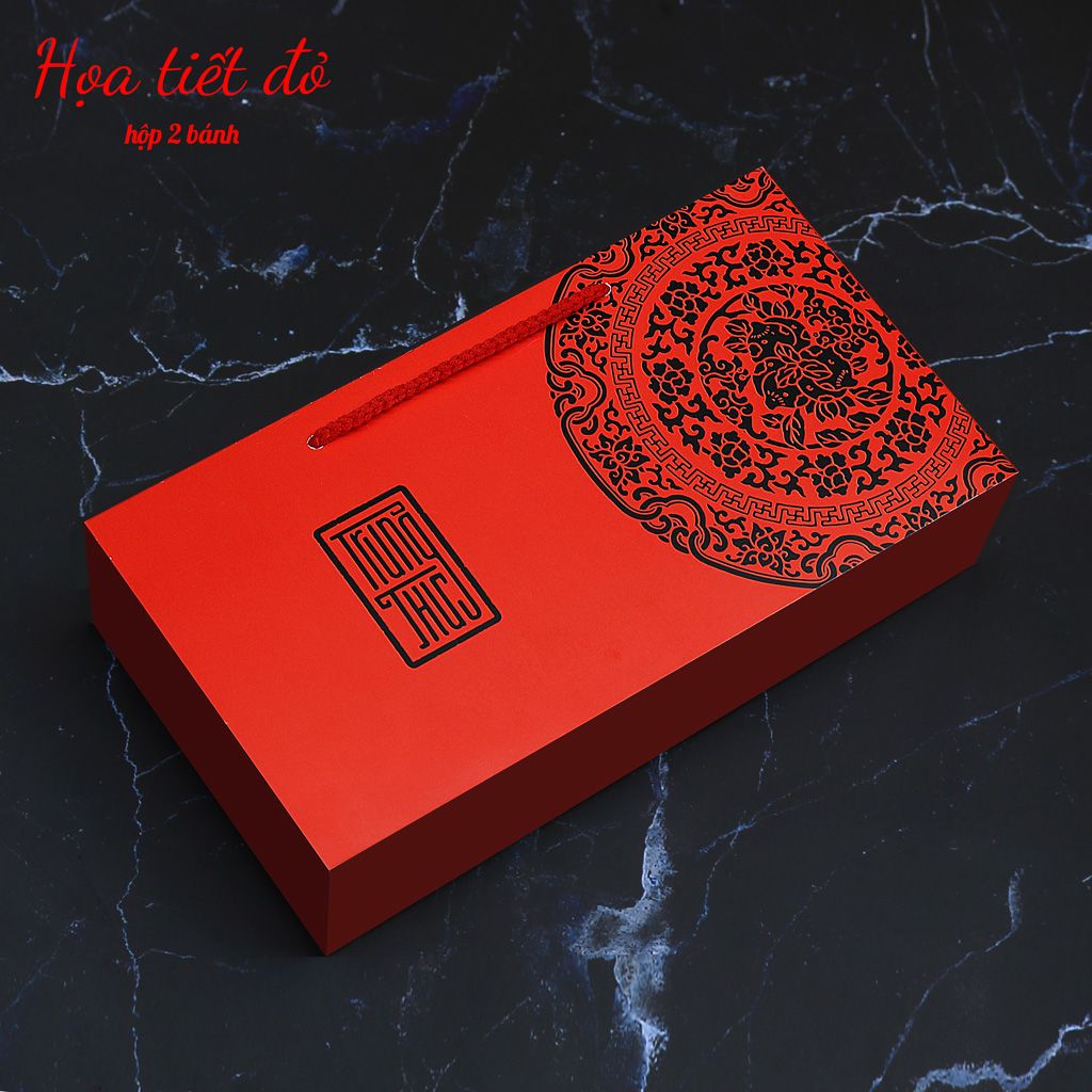 Hộp giấy đựng 2 bánh trung thu 125-250g mẫu họa tiết đỏ