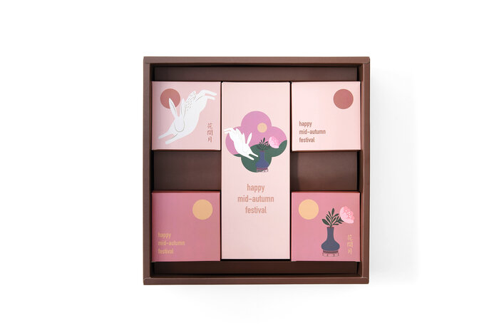Thiết kế đóng mở nắp theo kiểu âm dương vô cùng thuận tiện trong quá trình sử dụng. 5 hộp nhỏ bên trong sử dụng loại giấy Ivory cho ra hình ảnh chân thực và đẹp mắt nhất. Mỗi chiếc hộp lại thể hiện một câu chuyện riêng biệt, xoay quanh chủ đề của tết Trung Thu.