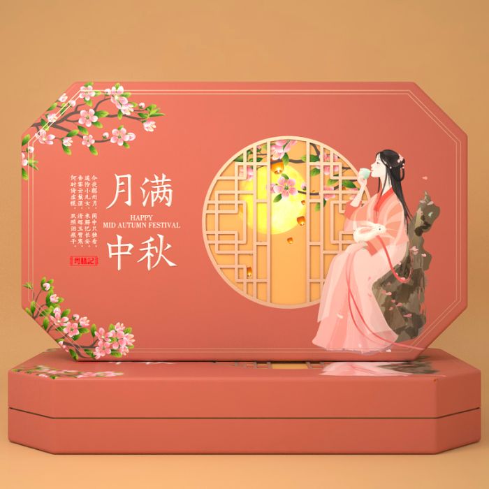 Để tạo điểm nhấn cho thiết kế, ấn phẩm hộp đựng bánh trung thu PG-HTT23-188 sử dụng thêm công nghệ cắt giấy CNC để làm phần khung cửa sổ trên mặt sản phẩm. Hiệu ứng hình ảnh 3D này đã làm tăng sự sinh động và tạo nên chiều sâu cho thiết kế.