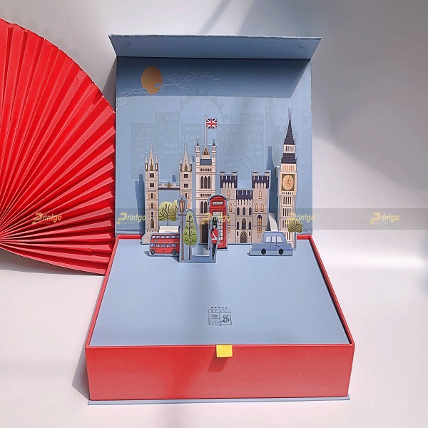 Điểm đặc biệt khiến cho hộp trung thu Scavi & Ray PG-TT22-77 nổi bật hơn bất kỳ sản phẩm nào khác nằm ở bức tranh 3D ẩn bên trong hộp. Ngay khi mở nắp hộp ra, bức tranh thành phố London sẽ tự động dựng lên khiến quý khách phải xuýt xoa, trầm trồ vì sự đầu tư của Scavy & Ray.