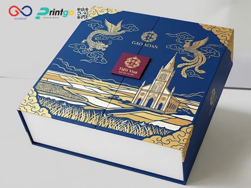 Song song với phiên bản hộp cánh bướm cao cấp, Printgo còn mang đến lựa chọn hộp nam châm cạnh nhằm đáp ứng đa dạng nhu cầu của doanh nghiệp. Thiết kế này vẫn giữ được sự chắc chắn và chỉn chu nhưng có khả năng tối ưu chi phí tốt hơn, phù hợp với các đơn hàng số lượng lớn hoặc kênh phân phối rộng. Trong khi đó, hộp cánh bướm sẽ là lựa chọn lý tưởng khi doanh nghiệp muốn tạo điểm nhấn mạnh về hình ảnh và trải nghiệm, đặc biệt trong các dòng sản phẩm quà tặng cao cấp.