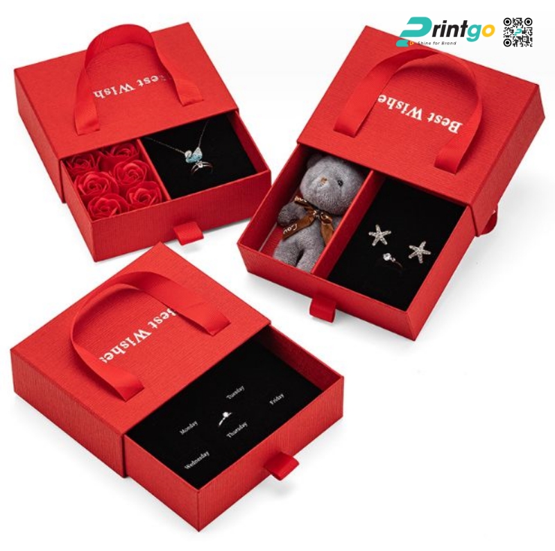 Valentine là khoảnh khắc để cảm xúc được gửi gắm trọn vẹn qua từng chi tiết nhỏ, và bao bì chính là điểm chạm đầu tiên của yêu thương. Tại Printgo, hộp cứng bao diêm có quai xách đựng quà Valentine được xem như một lựa chọn tinh tế, nơi thiết kế gọn gàng, chắc chắn hòa quyện cùng cơ chế mở trượt mềm mại và quai xách thanh lịch, tạo nên trải nghiệm trao quà đầy cảm xúc. Không chỉ nâng tầm giá trị món quà bên trong, kiểu hộp này còn giúp người tặng thể hiện sự chỉn chu, khéo léo và chân thành, biến mỗi món quà Valentine trở thành một dấu ấn đáng nhớ ngay từ ánh nhìn đầu tiên.