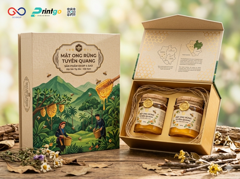 Mỗi mùa thu hoạch mật ong rừng Tuyên Quang là thời điểm các doanh nghiệp và HTX đẩy mạnh đưa sản phẩm ra thị trường, hướng đến những phân khúc khách hàng có yêu cầu ngày càng cao. Với sản phẩm đạt chuẩn OCOP 4 sao, việc đầu tư bao bì cần được thực hiện bài bản để tương xứng với chất lượng và giá trị đặc sản. Bao bì trở thành yếu tố quan trọng giúp sản phẩm tạo ấn tượng ban đầu, củng cố niềm tin và nâng cao khả năng cạnh tranh. Thấu hiểu điều đó, Printgo mang đến giải pháp in hộp cứng đựng mật ong rừng Tuyên Quang chuyên nghiệp, hỗ trợ doanh nghiệp tối ưu bảo quản, gia tăng giá trị cảm nhận và phát triển thương hiệu bền vững trên thị trường.
