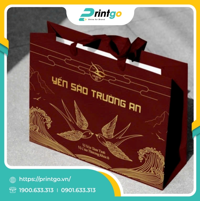 Bộ sản phẩm còn được hoàn thiện với túi giấy đồng bộ về màu sắc, chất liệu và phong cách. Túi giấy không chỉ tăng thêm tính nhận diện thương hiệu mà còn mang đến sự thuận tiện tối đa cho khách hàng, biến mỗi món quà yến sào Trường An trở thành biểu tượng của sự trân trọng và đẳng cấp.