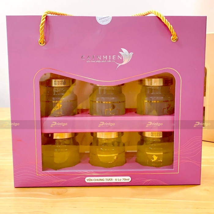 Hiện nay bao bì không chỉ là vật để chứa đựng sản phẩm mà trở thành công cụ truyền thông mang lại hiệu quả cao. Bởi nó chiếm tới 40% quyết định mua hàng nên được các thương hiệu quan tâm, đặc biệt là các sản phẩm kinh doanh có giá trị như yến sào. Mang tới cho khách hàng nhiều sự lựa chọn, Printgo xin giới thiệu mẫu hộp đựng 10 hũ yến chưng Cát Nhiên PG-HYS-62 với thiết kế đơn giản nhưng tạo ấn tượng và thu hút khách hàng rất tốt.