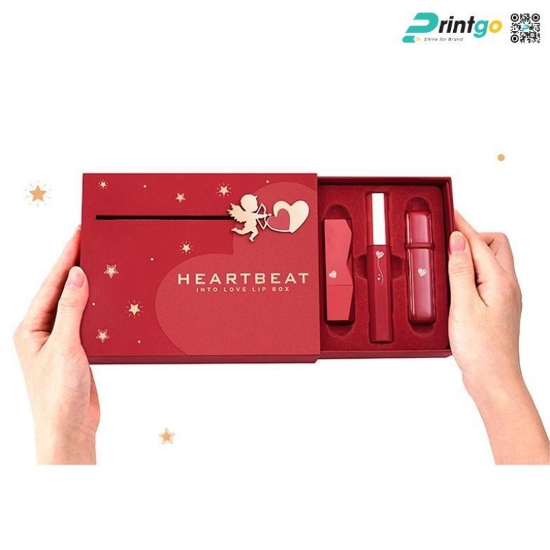 Với kích thước được tính toán hợp lý, mẫu hộp đáp ứng tốt nhu cầu đựng nhiều loại quà tặng Valentine như son môi, mỹ phẩm, phụ kiện hoặc các sản phẩm quà tặng nhỏ gọn khác. Bên trong hộp được bố trí khay định hình chắc chắn, giúp cố định sản phẩm, giữ bố cục gọn gàng và hạn chế xê dịch trong quá trình vận chuyển, đồng thời nâng cao trải nghiệm khi người nhận mở hộp.