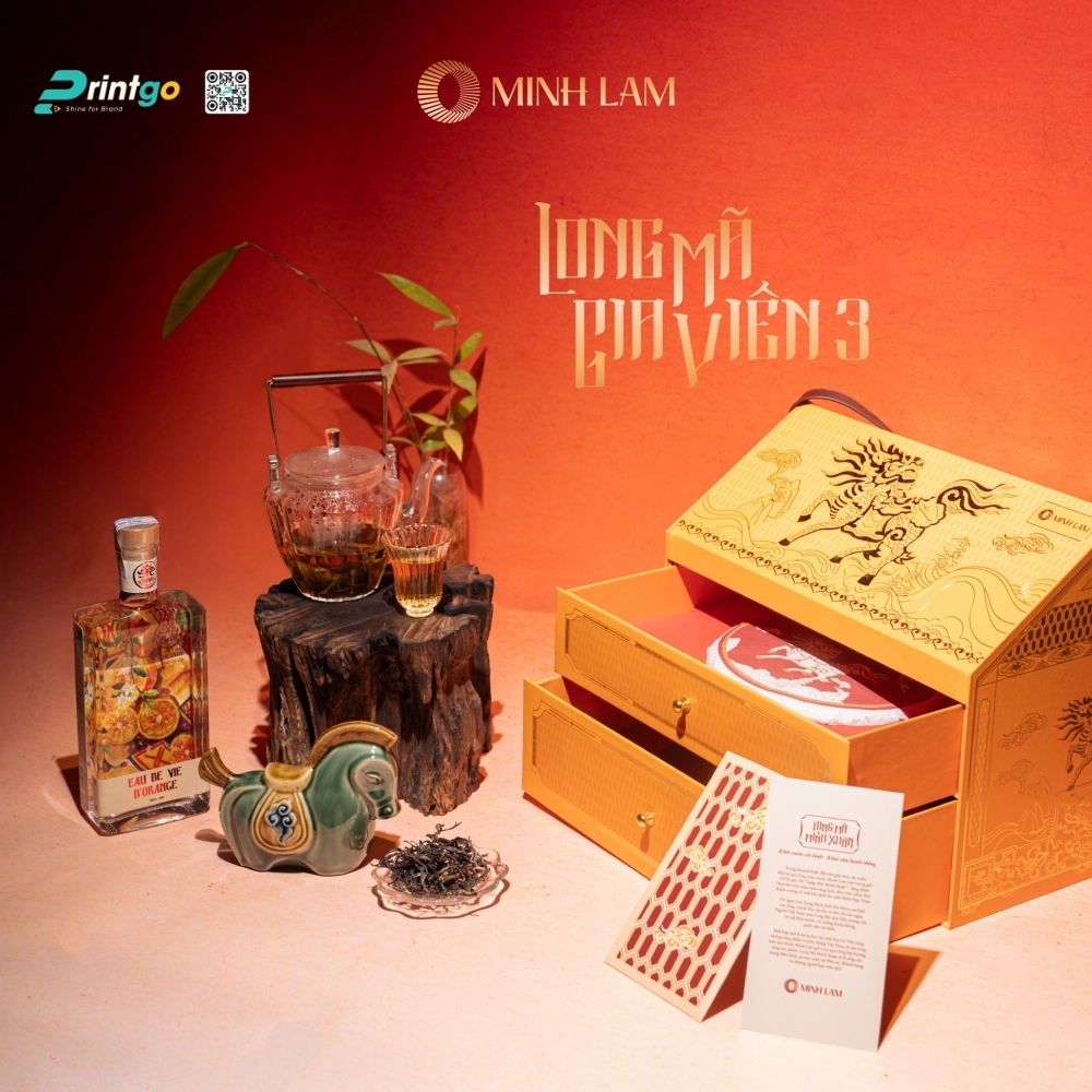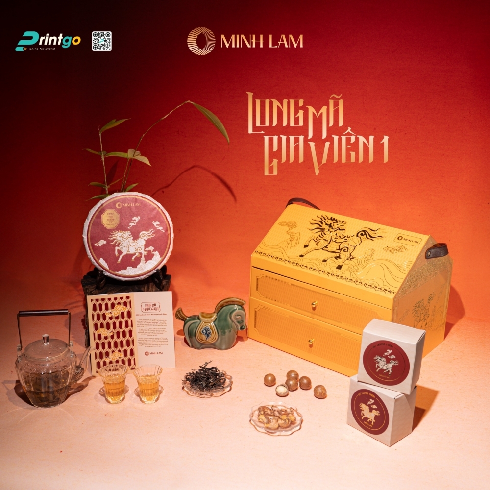Trà phổ nhĩ là dòng trà cao cấp nổi tiếng với hương vị đậm đà và giá trị thưởng trà lâu năm, thường được lựa chọn làm quà biếu sang trọng trong nhiều dịp đặc biệt. Để tôn lên trọn vẹn giá trị của sản phẩm, việc đầu tư vào một mẫu hộp đựng phù hợp không chỉ giúp bảo quản trà tốt hơn mà còn góp phần nâng cao hình ảnh thương hiệu. Printgo xin giới thiệu đến quý khách mẫu hộp đựng trà phổ nhĩ Minh Lam với thiết kế concept “Long Mã Gia Viên” sang trọng, được chúng tôi trực tiếp thiết kế và sản xuất cho thương hiệu trà Minh Lam.