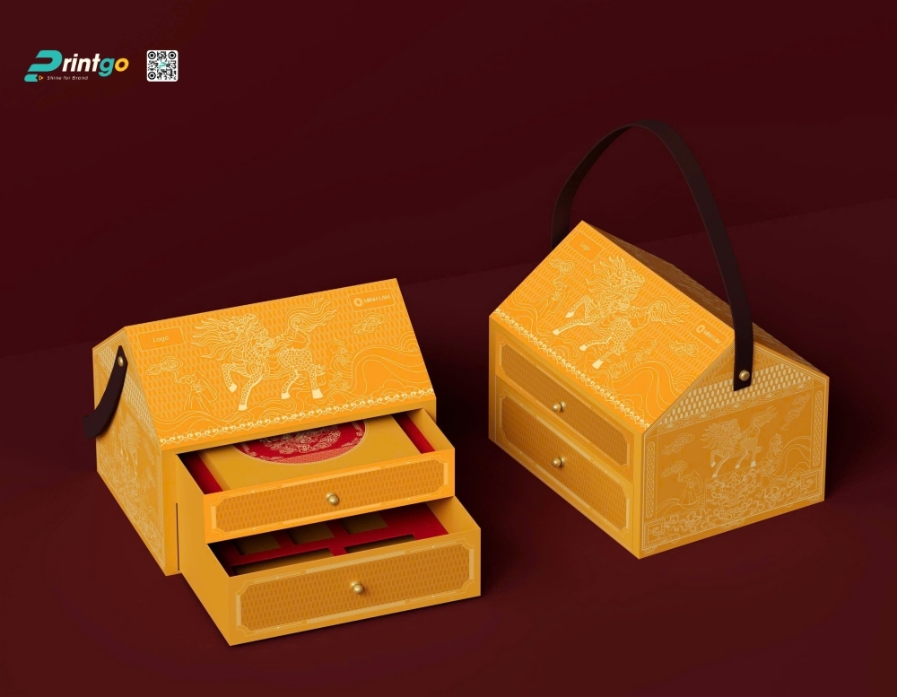Với kinh nghiệm thực hiện nhiều dự án bao bì cao cấp, Printgo đã thành công chinh phục quy cách hộp đặc biệt này cho thương hiệu Minh Lam. Từ việc xử lý form hộp, các góc mái, cho đến hệ ngăn kéo hai tầng đều được hoàn thiện tỉ mỉ, đảm bảo form hộp chuẩn và vận hành trơn tru. Sự kết hợp thêm quai xách da cao cấp không chỉ giúp tăng tính tiện dụng mà còn tạo điểm nhấn sang trọng, góp phần biến hộp trà phổ nhĩ Minh Lam trở thành một mẫu bao bì quà tặng độc đáo và khác biệt trên thị trường.