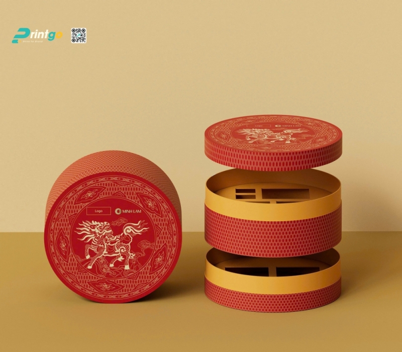 Thách thức kỹ thuật lớn nhất của mẫu hộp này nằm ở việc xử lý độ “hít” của nắp hộp và sự liên kết giữa các tầng. Để đạt được sự vừa vặn hoàn hảo, đội ngũ kỹ thuật của Printgo phải tính toán chính xác đường kính bù hao trong quá trình sản xuất. Nhờ đó, nắp hộp có thể đóng khít với phần thân mà không bị lỏng hay tuột khi nhấc lên, đồng thời vẫn đảm bảo thao tác mở hộp nhẹ nhàng, êm ái mà không cần dùng lực mạnh. Giải pháp kỹ thuật này không chỉ giúp đảm bảo tính thẩm mỹ của hộp mà còn mang lại trải nghiệm đóng mở mượt mà, tượng trưng cho sự hanh thông và thuận lợi trong năm mới.