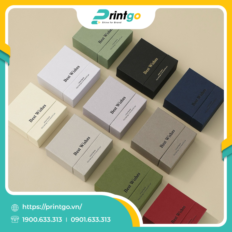 Để tăng độ nhận diện thương hiệu, trên nắp hộp có thể được in logo nổi bật hoặc slogan ý nghĩa. Với công nghệ in ấn hiện đại tại Printgo, logo có thể được ép kim, dập nổi hoặc in UV sắc nét, giúp khách hàng dễ dàng ghi nhớ thương hiệu của bạn.